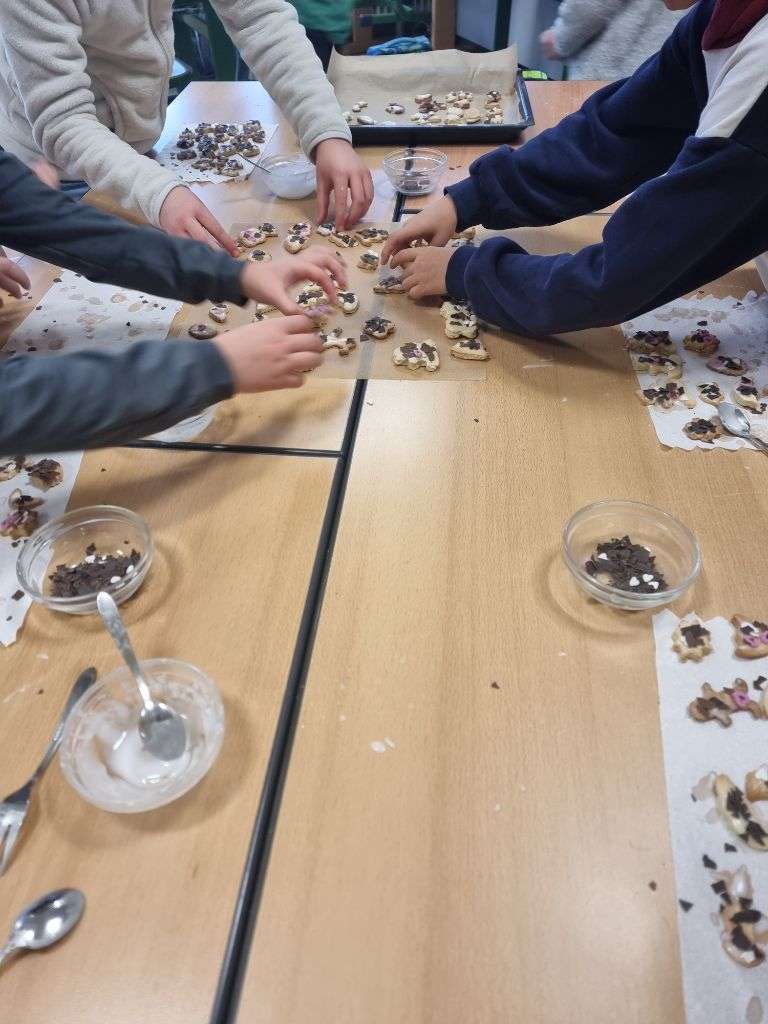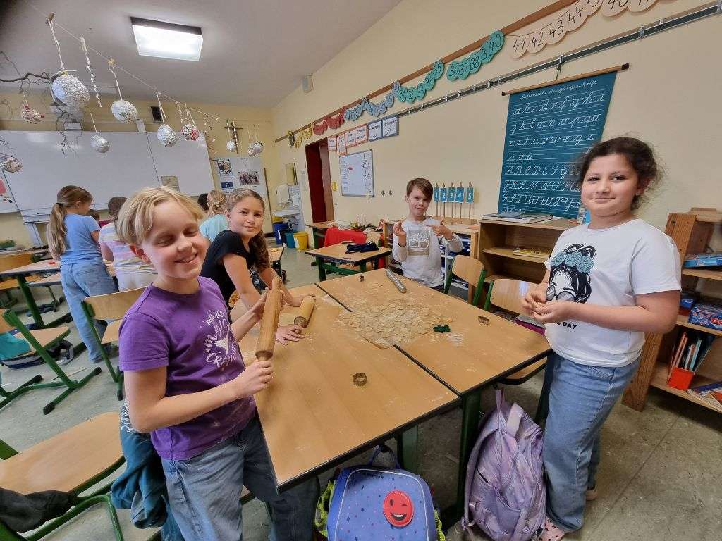 In der vergangenen Woche duftete es herrlich süß aus dem Klassenraum der 4b: Die Schülerinnen und Schüler haben gemeinsam Plätzchen gebacken! Mit großem Eifer wurde ausgewellt, ausgestochen und verziert – und natürlich zwischendurch auch ein bisschen genascht.