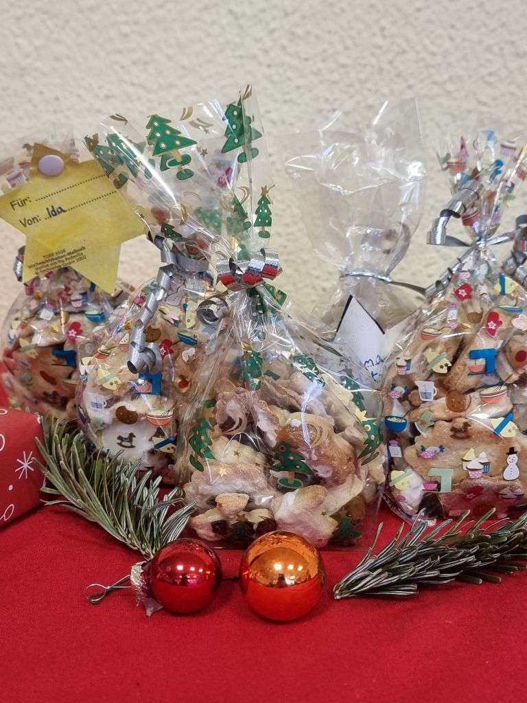Dank guter Teamarbeit und viel Kreativität entstand eine bunte Auswahl an Weihnachtsplätzchen, die anschließend in kleine Tütchen verpackt wurden.