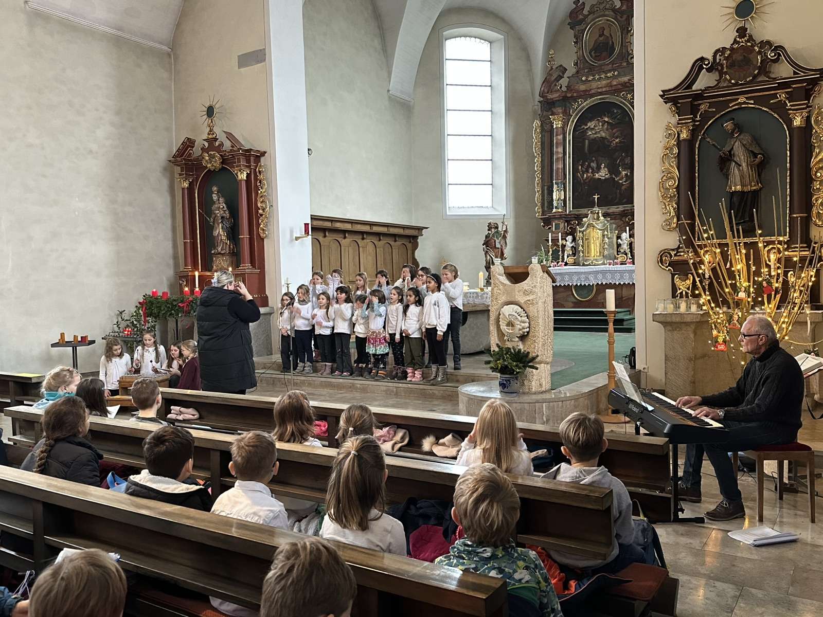 Fr. Spiekermann entließ die Schüler nach einem sehr ansprechenden Gottesdienst in die wohl verdienten Weihnachtsferien.