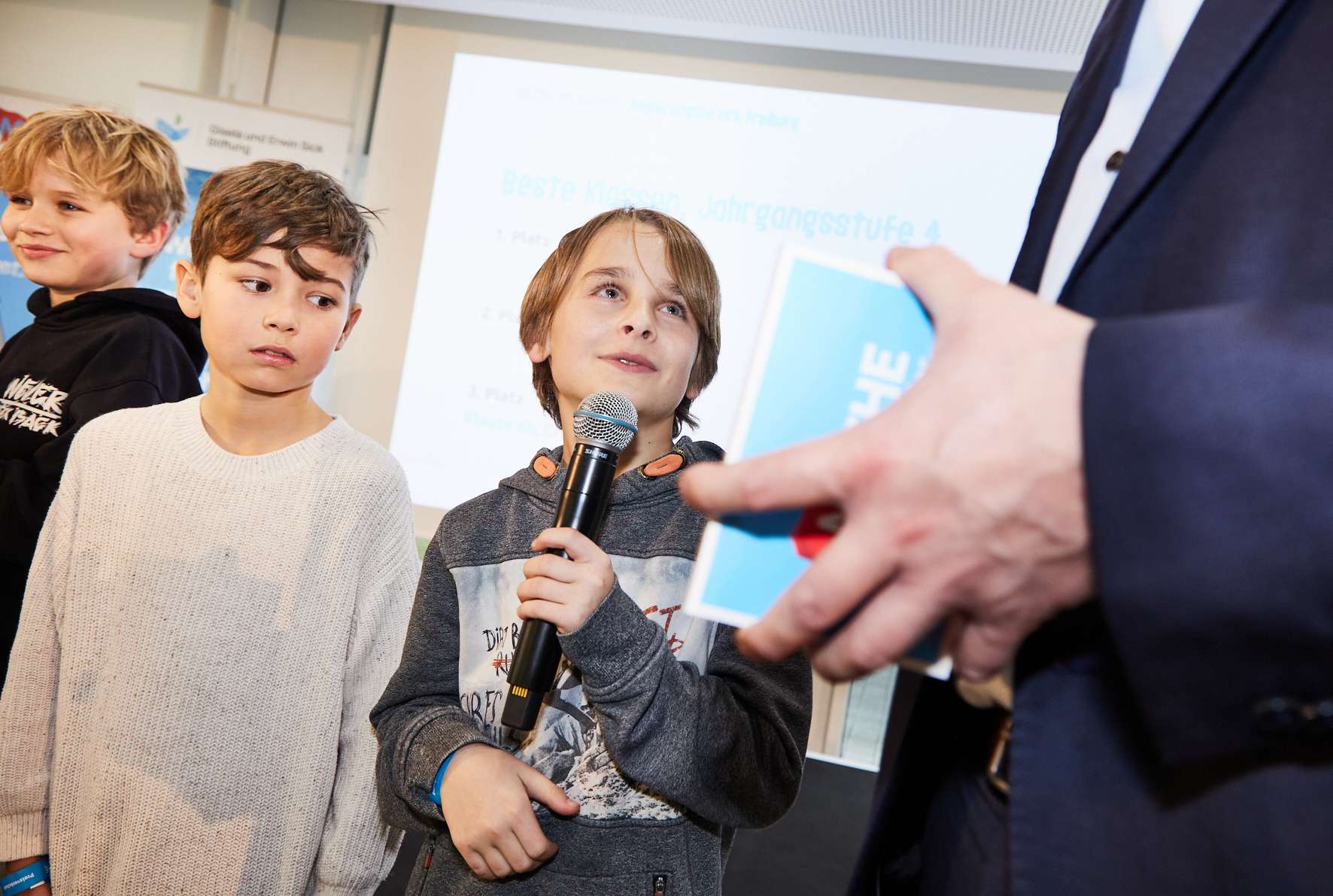 Dort durften die Preisgelder für die „Beste Grundschule“ sowie der Klassenpreis für die 4b, welche 3. unter allen 4. Klassengeworden ist, entgegen genommen werden.