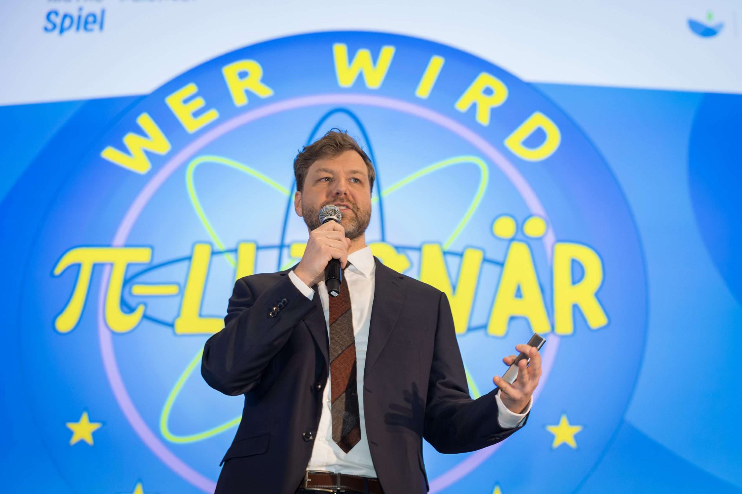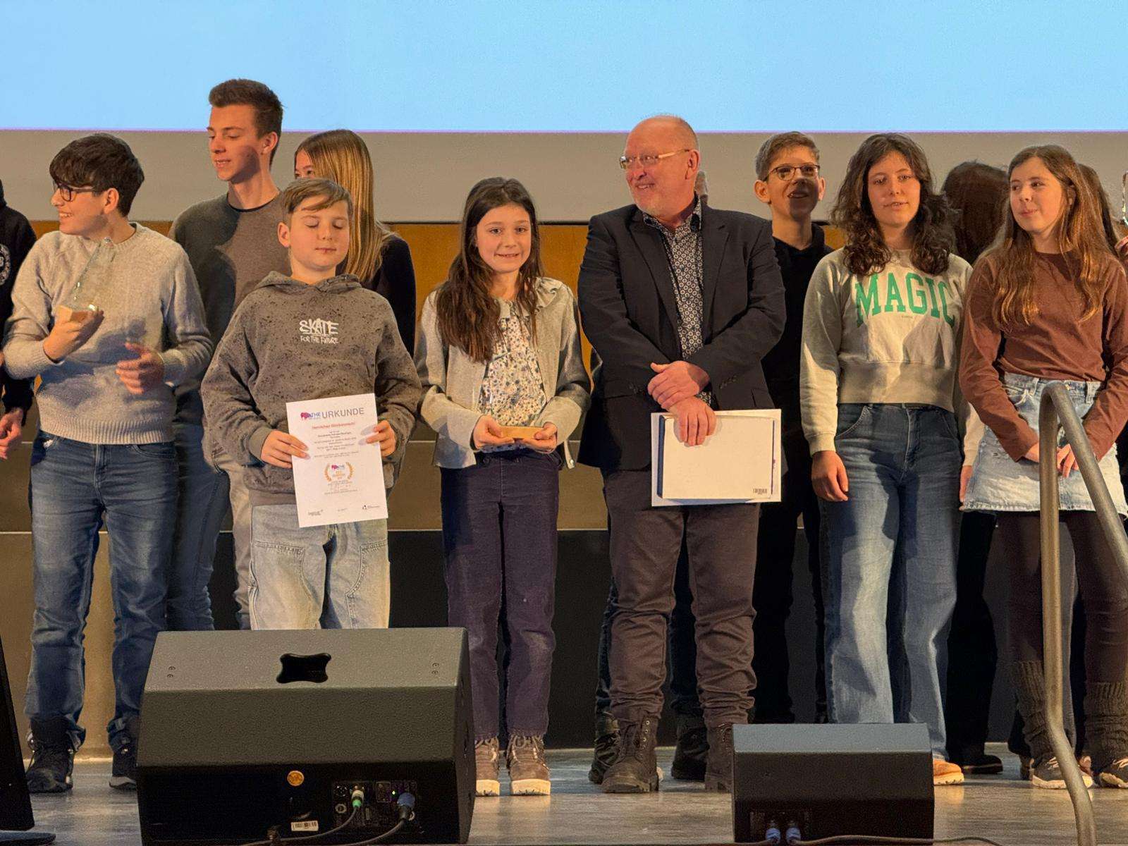 Die stolzen Gewinnerinnen und Gewinner wurden mit viel Applaus auf der Bühne begrüßt und mit einem abwechslungsreichen Showprogramm aus Musikeinlagen der Sängerin Sukini, dem mathematischen Spiel „Wer wird Pi-llionär?“ sowie Verpflegung belohnt. Den Pokal nahm der Konrektor Ulli Scheck, der seit Jahren den Fachbereich Mathematik an der Schule leitet, stellvertretend für die Schulgemeinschaft entgegen.
